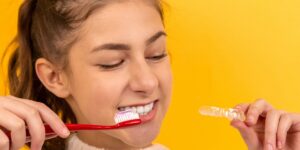 アライナーにより歯が密封され虫歯リスクが上がるため、三食の歯磨きはもちろんジェットウォッシャー&コンクールF併用で口内炎予防。